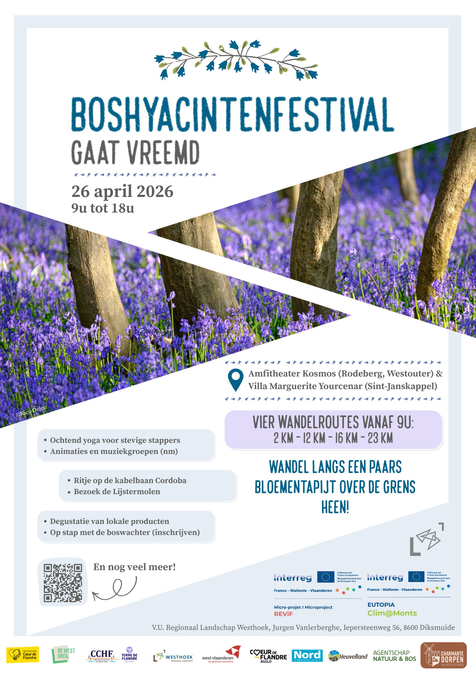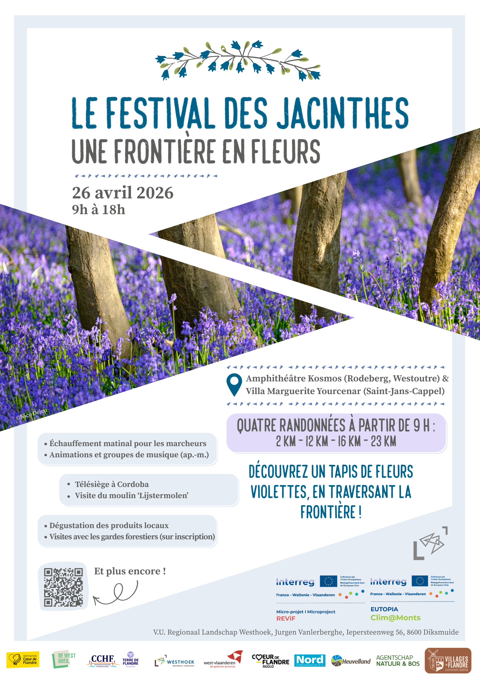 Organisatie: Regionaal Landschap Westhoek vzw, Coeur de Flandre agglo, Provincie West-Vlaanderen, Westtoer, gemeente Heuvelland, Agentschap voor Natuur en Bos en Département du Nord in het kader van de Interreg-FWVl projecten REViF en Clim@Monts